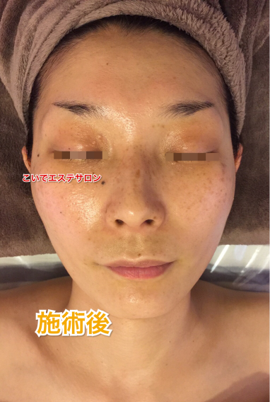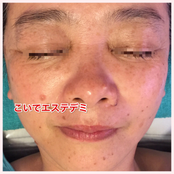 しみ、しわ、くすみで悩まれてご来店されました。施術後の改善にとても驚かれましたが、翌日以降も良かったと仰ってくださいました |